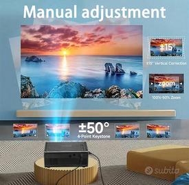 ✅NUOVO✅Proiettore portatile, supporta 1080p, alimentato tramite USB, con altoparlanti stereo integrati, correzione trapezoidale, con telecomando incluso, compatibile con più dispositivi, proiettore per casa cinema e cinema all'aperto, adatto anche per campeggio.