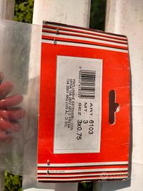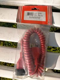 Vendo cavetto elettrico, prolunga a molla estensibile fino a 3 MT di colore rosso. Articolo certificato IMQ, standard italiano, presa (con alveoli di sicurezza) e spina da 10 A , sezione del cavetto 3X0.75 mmq. Disponibili una decina di pezzi in confezione originale nuovi mai aperti. Marca "Le Prolunghe". Il prezzo è riferito al singolo pezzo.