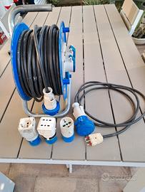 prolunga con avvolgicavo brennenstuhl modello garant st cee 320 con protezione anti surriscaldamento com mt 40 di cavo H07RN-F 3G2,5. con qualche accessorio per impianto civile.