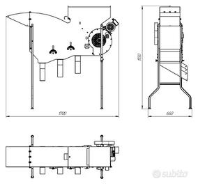 Il ventilatore e pulitore per cereali è destinato all'uso in aziende agricole piccole e grandi. L'operatore determina individualmente la dimensione della frazione e può caricare qualsiasi chicco: segale, grano, girasole, mais, legumi, chicchi di caffè.