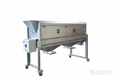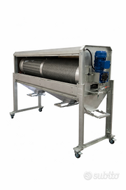 Produttivita', t/h 5 Diametro tamburo, mm 456 Nr. Sezioni tamburo 2 Dimensione del tessuto del setaccio, mm 710*1430 Consumo di energia elettrica 0.55 KW 50Hz 220V Dimensioni in mm (lung x larg x alt) 2288*783*1678-2062 Peso 265 kg RBS-10 + Sistema di aspirazione Dimensioni in mm (lung x larg x alt) 2632 х 1434 х 2313-2697 Consumo di energia elettrica 1.65 KW 50Hz 220V Peso 345 kg Accessori che si possono abbinare con questo prodotto: + Sistema di aspirazione con ciclone I separatori di cereali RBS sono in grado di lavorare qualsiasi tipo di prodotto agricolo. Per ogni coltura viene installato un set di vagli e vengono selezionati i parametri di vagliatura. La produttività della macchina varia a seconda del tipo di coltura. L’efficienza e la produttività nominale degli RBS in modalità di pulizia primaria vengono misurate utilizzando grano con una densità apparente di 760 kg/m³, un contenuto di umidità del 12% e un contenuto di impurità del 3%. Quando si lavora materiale con una densità apparente diversa, la produttività degli RBS è proporzionale alla variazione della densità apparente. La produttività del separatore (t/h) diminuisce del 2% per ogni punto percentuale in più rispetto al contenuto nominale di impurità e del 5% per ogni punto percentuale in più rispetto all’umidità nominale. L’aspiratore consente di separare le particelle leggere e la polvere dal grano prima che colpisca il tamburo del tubo. La riduzione del contenuto di particelle fini nel grano riduce il numero di setacci usati e li trasforma in transizioni, il che aumenterà notevolmente l’efficienza della macchina. Inoltre, non tutti i rifiuti e le miscele possono essere separati sugli schermi. Ad esempio, la shell può essere separata solo da un flusso d’aria.