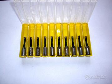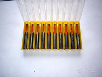 Vendo a 3 euro cadauna, anche sciolte, oltre 150 punte a forare in HW micrograna di diametro 5 mm dx e sx divise in due altezze: 50 mm e 80 mm. Durata notevolmente superiore alle tradizionali punte in widia.