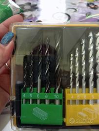 cofanetto da 15 punte trapano 5 per legno 5 per calcestruzzo e mattoni e cinque per metallo come in descrizione foto. disponibili 20 pezzi il prezzo è cadauno con sconti per chi acquista più pezzi ancora sigillati