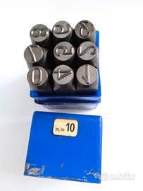 Numeri punzoni in acciaio inox mm 10 9 pezzi 6=9 vintage anni 60.