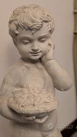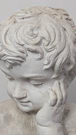 statua decorativa, spesso definita putto, che riproduce uno stile classico o neoclassico. Questo manufatto è comunemente realizzato in materiali come la polvere di marmo o resine per arredamento interno o esterno, utilizzato per decorare giardini o interni con un tocco artistico. Risulta molto pesante pertanto la consegna è prevista solo a mano ( no spedizione). Sempre esposto in casa quindi non risulta avere difetti di usare da agenti atmosferici. Misure v foto