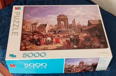 Questo è un puzzle molto raro, come la maggior parte dei puzzle di belle arti di MB . Quelli grandi sono molto difficili da trovare. Il titolo di questo è The Market and Fountain of the Innocents, Paris , di John James Chalon .
