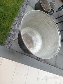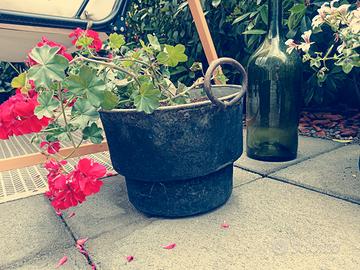 Quadara antica di rame in buono stato. Si può usare anche come fioriera ( vedi foto dimostrative) Supporto in ferro incluso.