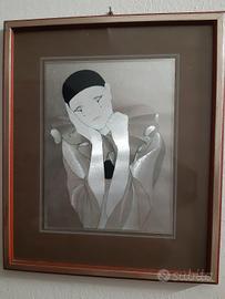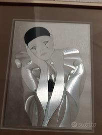 Quadretto raffigurante un delicato pierrot cm30 x26, fatto con una lamina di alluminio
