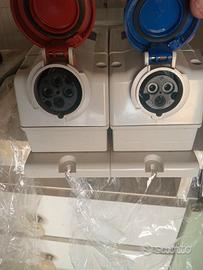 Vendo coppia di quadri elettrici trifase, 380 V, uno con presa doppia blu e rossa, l altro con tripla presa blu. Completi di scatola di derivazione, e sede per fusibili e/o relè.