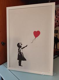 La bambina con il palloncino di Banksy. Quadro poster cornice bianca inclusa. Dimensioni 21 x 30 cm.