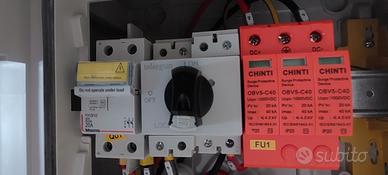 Quadro elettrico per impianto fotovoltaico con predisposizione per 2 stringhe. - Interruttore generale per ciascuna stringa. - Scaricatori di sovratensione Chint OBV5-C40 per ciascuna stringa. - Disponibi due quadri 100e l una