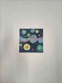 Quadro 30x30cm realizzato con gli acrilici. Reinterpretazione personale della Notte Stellata di Van Gogh