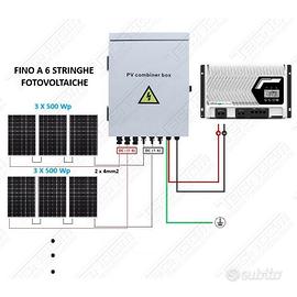 Il quadro ha 6 ingressi per potenze fino a 15A per ingresso. Ideale per mettere in SICUREZZA in parallelo stringhe diverse.