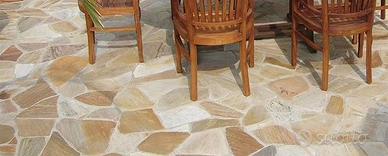La quarzite gialla (e variante misto giallo/arancio) è una pietra naturale metamorfica estremamente resistente all'usura, all'abrasione, agli agenti atmosferici, agli sbalzi termici, rendendola adatta anche a zone ad alto calpestio, ideale per rivestimenti e pavimentazioni esterne, anche carrabili, grazie alla sua natura antigeliva, antiscivolo (a spacco naturale),