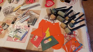 cCirca un centinaio di pennelli con pelo di vari materiali, dai più fini per i dettagli ai più grossi per gli sfondi. Spatole per tecniche di pittura con varie forme, e molto altro materiale in ottime condizioni