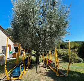 Raccogli olive manuale senza teli e senza casse. Misure: lunghezza 5,20 m. larghezza con ali aperte 3 m. con ali chiuse 1,25 m.
