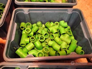 Come si vede dalle foto si tratta di 7 scatole di raccordi di vario tipo e di vari diametri. Si tratta di rimanenze di magazzino che vendiamo per non utilizzo.