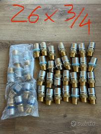 Prezzo da concordare. Vendibili anche in stock di quantitativi inferiori a quelli elencati di seguito: - 46 raccordi 20x1/2 maschio - 4 raccordi 20x1/2 femmina - 35 raccordi 20x3/4 maschio - 1 raccordi 20x3/4 femmina - 4 curve 20x3/4 femmina - 20 curve 20x3/4 maschio - 14 manicotti 20x20 - 10 curve 20x20 - 6 tee 20x20x20 - 8 tee 20x1/2x20 - 9 riduzioni 20x16 - 7 tee 16x1/2x16 femmina - 15 curve 26x3/4 maschio - 2 curve 26x3/4 femmina - 11 curve 26x26 - 11 tee 26x1/2x26 femmina - 38 raccordi 26x3/4 maschio - 10 tee 26x26x26 - 6 riduzioni 26x20 - 3 tee 26x3/4x26 femmina - 1 tee 26x20x26 - 3 manicotti 26x26 - 8 manicotti 32x32 - 4 curve 32x32 - 3 raccordi 32x1 maschio - 2 tee 32x20x32 - 2 riduzioni 32x20 - 1 riduzione 32x26 - 5 curve 40x40 - 3 raccordi 40x 1e1/2 maschio