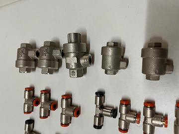 Vendo stock raccordi e componenti Pneumatica Metal Work come da foto, composta da raccordi vari ad innesto rapido per tubo pneumatico ∅ 8, ∅ 6, ∅4, raccordi girevoli con microregolatore, valvole scarico rapido ( 3 da 1/4 e 2 da 1/8), raccorderia varia. Valore commerciale oltre 300 euro.