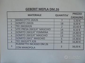 Raccordi Geberit Mepla a pinzare dm.26. Vendibili anche singolarmente.