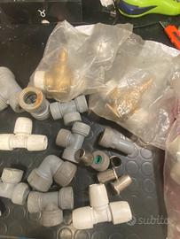 Nuovi!Raccordi vari tee tee ridotti due rubinetti arresto diameteo 15 e diameteo 20 anime in acciaio per tubo e raccordi acorn e thp per impianti idraulici acqua e riscaldamento tutto il lotto completo