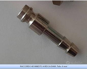 Raccordo per compressore ad aria compressa, set composta da: 1 raccordo rapido da 1/4" maschio; 1 innesto rapido a baionetta da 1/8" M; 1 innesto rapido a baionetta da 1/4" M; 1 innesto rapido a baionetta a resca per tubo diametro 6 mm. Vendo euro 17.00 più spese di spedizione.