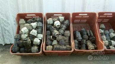 Raccordi "PLASON" in plastica da pollice 1/3 per tubi in plastica : 44 "T", 35 tappi, 37 raccordi "maschio", 23 "femmina", 12 raccordi tubo, 12 valvole, 104 staffe, 104 bocchettoni