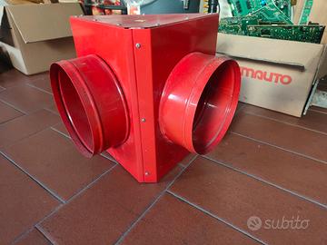 Vendo raccordo con 1 ingresso da 35cm di diametro e 2 uscite a 45 gradi di 24cm in metallo, usato forse 1 mese e poi messo da parte, solo da pulire.