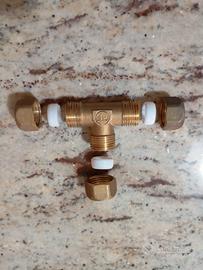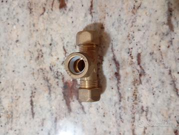 Raccordo in ottone a Tee per tubi in rame per impianti idraulici. Dimensioni : 16 x 16 x 16 Disponibilità 31 pezzi.