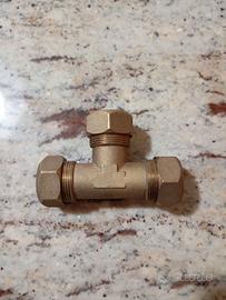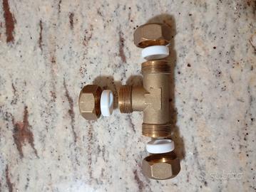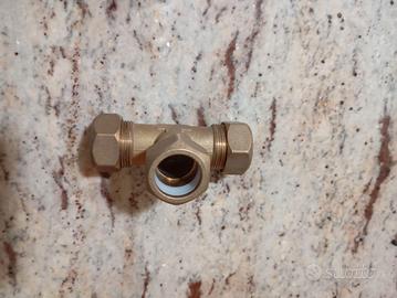 Raccordo in ottone a Tee per tubi in rame per impianti idraulici. Dimensioni : 22 x 22 x 22 Disponibilità 26 pezzi.