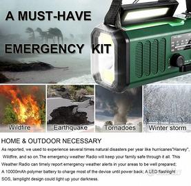 ✅NUOVA✅ Radio di emergenza multifunzionale resistente alle intemperie, radio portatile a manovella e alimentata a energia solare con batteria di riserva, AM/FM, NOAA, allarme SOS, 3 modalità di torcia e luce da lettura a LED, power bank ricaricabile da 10.000 mAh, ricarica USB Type-C, bussola per uso interno ed esterno, Adatta per escursionismo, campeggio ed emergenze.