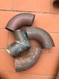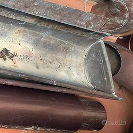 Rame nuovi ma esposti all'aria: 2 tubi pluviali 100mm x 3m ( 100 euro ciascuno) 2 tubi pluviali 100mm x 1,20m ( 50 euro ciascuno), 3 gronde 4m, di cui uno con testata ( 100 euro ciascuno) 4 gomiti come in foto gratis