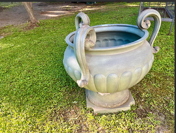 ARTICOLO raro: ENORME urna da giardino con maniglie alla base, realizzata in ceramica smaltata. Antica riconducibile al XX° secolo. CONDIZIONI: ottimo stato conservativo ma essendo un articolo antico/vintage può presentare i lievi segni del tempo che ne attestano l'originalità e il fascino. E' presente un angolo leggermente smussato, discreto e poco visibile, che non compromette né la stabilità né il valore estetico complessivo (vedi ultima foto) Proveniente da collezione privata Villa Veneta del '900. MISURE: h80xdiametro70cm VISIBILE e RITIRABILE zona Treviso. DETTAGLI: Le urne da giardino come questa sono ricercate per aggiungere un tocco di eleganza classica agli spazi esterni. La dimensione e la presenza delle maniglie ne migliorano la funzionalità e l'appeal estetico.