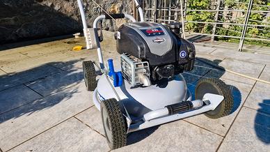 Gioiellino rasaerba GRIN brevetto italiano motore Brigg&Stratton Easy Starter potente e tecnologia americana. Larghezza di taglio 48.6 . Per tagliare veloci e perfetti e non raccogli piu erba. la risulta del taglio diventa un pulviscolo di mulching che concima il prato naturalmente. 3 altezze di taglio con sistema di sollevamento a parallelogramma brevetto Grin. praticamente inutilizzato. condizioni perfette sempre rimessato con guaina di protezione. ruote garden .