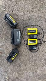 Vendo per inutilizzo Rasaerba a batteria Ryobi Mod. RY36LMX51A (costo nuovo oltre 600€), capacità taglio 51cm, alimentazione 36V diverse posizioni di taglio da 40 a 100mm+ Decespugliatore a batteria Ryoby MOD.RY36ELTX33A anche questo funziona a 36V+2 caricabatterie a 36V+ 3 Batterie( 2 36V 4A.h e 1 36V 6A.h), funzionanti al 80% della loro carica. Vendo solo in blocco, considerate che io su 1200M2 di prato con tutte e 3 batterie cariche finisco il lavoro senza pause. Ricapitolando 1 Rasaerbe+1Decespugliatore+2caricabatterie+3 batterie. Se guardate i costi online e li sommate siamo a meno di un terzo del loro valore.