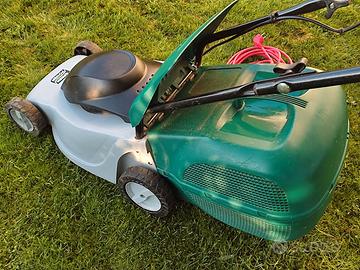 Rasaerba elettrico a filo GGP Italy spa - GreenPower modello GP-1300 Type C390 scocca in polipropilene (ABS) rinforzato, prodotta mediante fusione, e alla larghezza di taglio di 36cm e cestello raccolta erba.