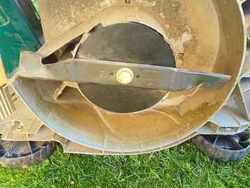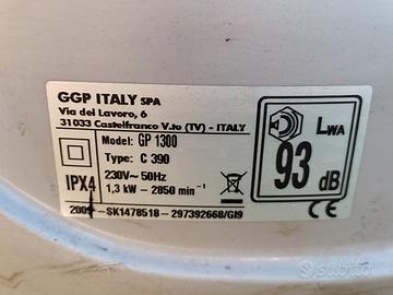 Il motore elettrico a spazzole, con una potenza di 1300W e una tensione di 230/240V - 50Hz, velocità a vuoto di 2850 giri/min - modello è dotato di quattro ruote due anteriori da 12,5 cm e due posteriori da 15,5 cm.