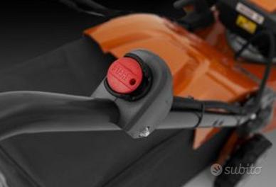 LC 347VE Husqvarna è un tagliaerba a raccolta semovente, perfetto per prati di medie dimensioni. La funzione di avviamento elettrico consente di iniziare il taglio senza sforzo: basta premere un pulsante e tirare l'impugnatura. Quando l'impugnatura viene rilasciata, il motore si arresta per eliminare il rischio di funzionamento incustodito. L'ergonomia e i risultati di taglio sono facili da ottimizzare perché sia l'impugnatura, la velocità e l'altezza di taglio si regolano facilmente. Durante il trasporto o il rimessaggio, le impugnature ripiegabili consentono al tagliaerba di occupare meno spazio.