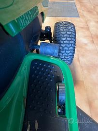 John Deere X125 revisionato, batteria nuova, pronto all’uso, 920 ore lavoro. Vendo trattorino rasaerba John Deere X125 in ottime condizioni, revisionato in tutte le sue componenti e con batteria nuova. Macchina affidabile, robusta e comoda da guidare, ideale per la manutenzione di giardini e prati di medie dimensioni. Il trattorino è perfettamente funzionante e pronto all’uso, venduto solo per inutilizzo. Punti di forza: John Deere X125 revisionato completamente batteria nuova motore affidabile guida semplice e confortevole ottima manovrabilità ideale per tagliare l’erba in modo rapido e ordinato Perfetto per chi cerca un mezzo serio, di qualità e già pronto per lavorare senza doverci mettere mano. Vendita per inutilizzo.