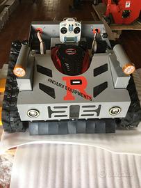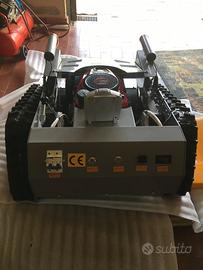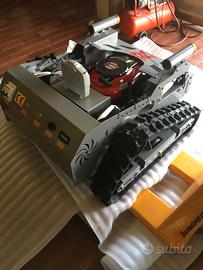 Rasaerba cingolato radio comandato, ibrido, un motore a benzina Loncin, 6HP, due motori elettici per i cingoli 400w cad., larghezza di taglio 540mm, fari a Led per uso notturno, pendenza massima con fondo asciutto 65%, venduto con garanzia, chiedi il prezzo!
