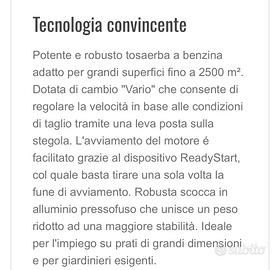 Rasaerba professionale a scoppio in buone condizioni funzionante necessita comunque di una revisionata. Nelle foto specifiche tecniche