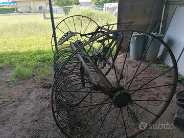 Vendo Rastrello ranghinatore trainato antico larghezza 2,50 e diametro ruote 1,35 se singolarmente € 220 Aratro antico lunghezza 2.10 - larghezza 0,80 - diametro ruote 0,75 se singolarmente € 150 Vendo in blocco tutti due € 300