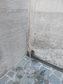 Usato, VENDO rastrello per fogliame con denti regolabili e flessibili che danno maneggevolezza all'attrezzo per un lavoro efficace e veloce. Comprensivo di manico in legno. Meccanismo di apertura a ventaglio.