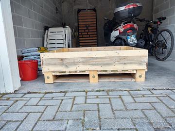 Recinti in legno fatti, assemblati ed inchiodati a mano con tavole di bancali Europallet o simili, alti 50 cm. Circa e avente lato 110 x 110 circa, ideali per coltivare fiori e piante in terrazza o come serraglio per pulcini, oche e galline appena nati.