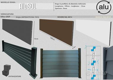 Doghe in alluminio per recinzioni , recinti , steccati , staccionate e frangivento per esterno per casa giardino terrazzi ecc.