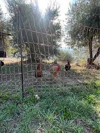 1 rete elettrificata di colore verde in ottime condizioni per pollame lunga 50m x 112cm altezza l’una, unibili con 20 pali da 2 picchetti = 100€