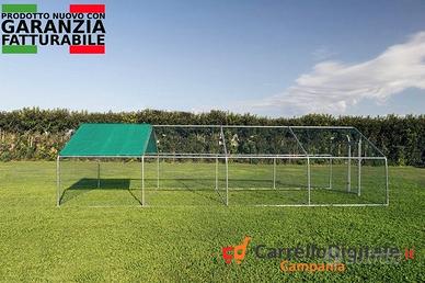 Pollaio, recinto per animali da esterno 3 x 8 x h 2 m - 24 mq Prezzo 392 euro IVA E TRASPORTO INCLUSI Possibilità di pagare alla consegna con un sovrapprezzo di 6 euro IVA inclusa. La nostra spaziosa e versatile gabbia per animali / pollaio di 8x3 m è l'ideale per la custodia di polli, galline, anatre e altri piccoli animali domestici e da cortile come cani, gatti , conigli , oche e altri volatili di grandi dimensioni. Realizzata con struttura tubolare di sezione 38 mm e spessore interno 1 mm in acciaio zincato di alta qualità. Rete metallica rivestita in pvc con alveoli 25x25 mm e prodotta con filo di spessore 1 mm, è fornita di una tettoia parasole, resistente ai raggi UV ed impermeabile in Polietilene. La nostra gabbia è provvista di rinforzi trasversali con supporto di fissaggio centrale a terra che, insieme alle altre caratteristiche strutturali, le conferiscono un'impareggiabile stabilità. Facile da costruire, il telaio della gabbia è dotato di meccanismo di assemblaggio ad aggancio rapido. Caratteristiche Tecniche -Dimensioni: 3 x 8 x h 2 m -Altezza Fianco: 120 cm -Dimensioni apertura Porta: 56 x 158 cm -Porta con sistema di montaggio regolabile che permette di modificare le dimensioni del battente della porta in modo da bloccare qualunque tentativo di accesso da parte di animali predatori. -Sistema di chiusura con lucchetto -Struttura tubolare in acciaio zincato da 38 mm e spessore interno 1 mm -Telaio ad aggancio rapido -Rinforzi trasversali a terra (unica sul mercato) -Rete Metallica rivestita in PVC, con alveoli da 25 x 25 mm e spessore del filo 1 mm -Colore Telone: viola -Telone in Polietilene 190 x 300 cm -24 MQ -Peso totale 117kg (verificate sempre il peso delle strutture, diffidate da pesi troppo bassi) Contattaci subito per avere maggiori informazioni. Oppure inviaci un messaggio con il tuo numero e ti richiameremo non appena possibile Telefono/Whatsapp: