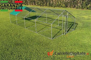 Pollaio, recinto per animali da esterno 3 x 8 x h 2 m - 24 mq Prezzo 392 euro IVA E TRASPORTO INCLUSI Possibilità di pagare alla consegna con un sovrapprezzo di 6 euro IVA inclusa. La nostra spaziosa e versatile gabbia per animali / pollaio di 8x3 m è l'ideale per la custodia di polli, galline, anatre e altri piccoli animali domestici e da cortile come cani, gatti , conigli , oche e altri volatili di grandi dimensioni. Realizzata con struttura tubolare di sezione 38 mm e spessore interno 1 mm in acciaio zincato di alta qualità. Rete metallica rivestita in pvc con alveoli 25x25 mm e prodotta con filo di spessore 1 mm, è fornita di una tettoia parasole, resistente ai raggi UV ed impermeabile in Polietilene. La nostra gabbia è provvista di rinforzi trasversali con supporto di fissaggio centrale a terra che, insieme alle altre caratteristiche strutturali, le conferiscono un'impareggiabile stabilità. Facile da costruire, il telaio della gabbia è dotato di meccanismo di assemblaggio ad aggancio rapido. Caratteristiche Tecniche -Dimensioni: 3 x 8 x h 2 m -Altezza Fianco: 120 cm -Dimensioni apertura Porta: 56 x 158 cm -Porta con sistema di montaggio regolabile che permette di modificare le dimensioni del battente della porta in modo da bloccare qualunque tentativo di accesso da parte di animali predatori. -Sistema di chiusura con lucchetto -Struttura tubolare in acciaio zincato da 38 mm e spessore interno 1 mm -Telaio ad aggancio rapido -Rinforzi trasversali a terra (unica sul mercato) -Rete Metallica rivestita in PVC, con alveoli da 25 x 25 mm e spessore del filo 1 mm -Colore Telone: Azzurro -Telone in Polietilene 190 x 300 cm -24 MQ -Peso totale 117kg (verificate sempre il peso delle strutture, diffidate da pesi troppo bassi) Contattaci subito per avere maggiori informazioni. Oppure inviaci un messaggio con il tuo numero e ti richiameremo non appena possibile Telefono/Whatsapp: