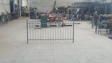 Vendesi ringhiere di nostra realizzazione di dimensioni modulari mt 2x1 completamente imbullabili ai piantoni muniti di piastra a tassellare, ideali per una posa fai da te senza l'utilizzo di saldatrice. Prezzo al modulo grezzo da posare euro 65.oo inclusi i bulloncini, prezzo al modulo verniciato senza posa euro 80.oo inclusi bulloncini. È possibile richiedere il preventivo per la realizzazione e posa di cancelli pedonali o carrai con medesimo stile. Consegnamo nelle seguenti regioni: Piemonte, Lombardia, Liguria, Valle d'Aosta , Emilia Romagna.