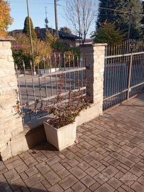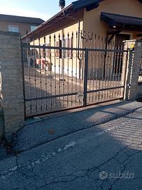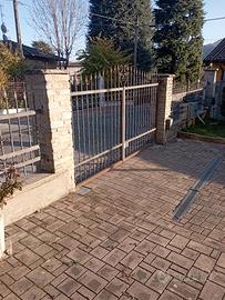 Per riqualificazione area di vende portone, portina ingresso e recinzione in ferro verniciato a forno. La cancellata ha 6 anni. È da ritoccare ma non ha ruggine, e costruita con ferro pieno. Il portone pesa 260 kg.